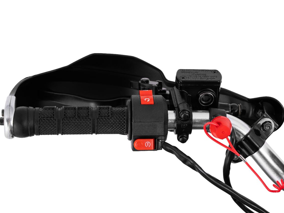 Комплектация Sharmax 180 CROSS RX включает аккумулятор 12Аh/12V, защиту рук и электронную приборную панель, а также чеку безопасности. Багажная решетка с грузоподъемностью 35 кг обеспечивает дополнительное пространство для хранения. Гарантия на Квадроцикл составляет 3 года, что подчеркивает его надежность и качество.